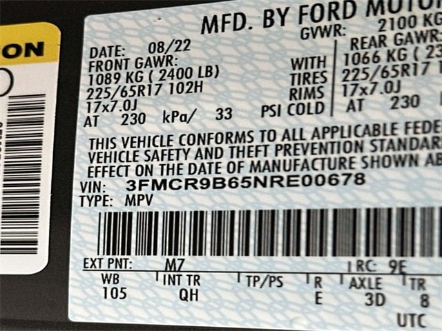 Recent Arrival! Convenience Package (Front Driver & Passenger Seatback Zipper Pockets, Heated Front Bucket Seats, Intelligent Access (Lock/Unlock), Leather-Wrapped Steering Wheel, LED Fog Lamps, Rear Parking Sensors, Universal Garage Door Opener (UGDO), and Wireless Charging Pad), Equipment Group 200A, 3.80 Axle Ratio, 4-Wheel Disc Brakes, 4G LTE Wi-Fi Hotspot Credit, 6 Speakers, ABS brakes, Air Conditioning, Alloy wheels, AM/FM radio: SiriusXM, AM/FM Stereo, Auto High-beam Headlights, Automatic temperature control, Brake assist, Compass, Delay-off headlights, Driver door bin, Driver vanity mirror, Dual front impact airbags, Dual front side impact airbags, Electronic Stability Control, Emergency communication system: SYNC 3 911 Assist, Four wheel independent suspension, Front anti-roll bar, Front Bucket Seats, Front Center Armrest, Front License Plate Bracket, Front reading lights, Fully automatic headlights, Heated door mirrors, Illuminated entry, Knee airbag, Low tire pressure warning, Occupant sensing airbag, Outside temperature display, Overhead airbag, Overhead console, Panic alarm, Passenger door bin, Passenger vanity mirror, Power door mirrors, Power steering, Power windows, Radio data system, Rear anti-roll bar, Rear reading lights, Rear seat center armrest, Rear window defroster, Rear window wiper, Remote keyless entry, Roof rack: rails only, Security system, SiriusXM Radio, Speed control, Speed-sensing steering, Speed-Sensitive Wipers, Split folding rear seat, Steering wheel mounted audio controls, SYNC 3 Communications & Entertainment System, SYNC 3/Apple CarPlay/Android Auto, Tachometer, Telescoping steering wheel, Tilt steering wheel, Traction control, Trip computer, Unique Cloth Front Bucket Seats, Variably intermittent wipers, and Wheels: 17" Carbonized Gray-Painted Aluminum.