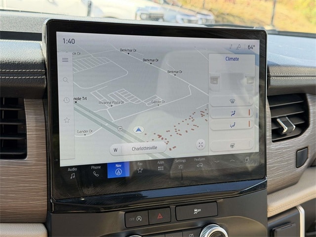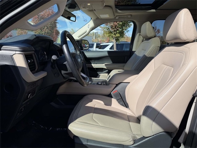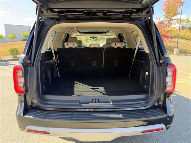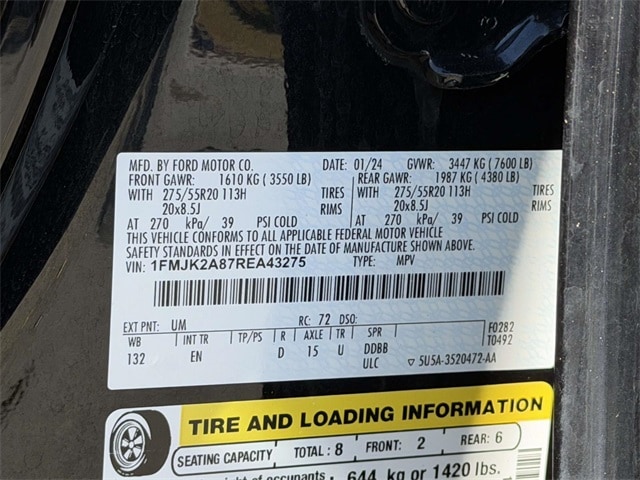 Equipment Group 301A Mid Package, 12 Speakers, 2nd Row Power-Folding 40/20/40 Leather Bench Seat, 3.31 Axle Ratio, 3rd row seats: split-bench, 4-Wheel Disc Brakes, ABS brakes, Adjustable pedals, Air Conditioning, Alloy wheels, AM/FM radio: SiriusXM with 360L, Auto High-beam Headlights, Auto-dimming door mirrors, Auto-dimming Rear-View mirror, Automatic temperature control, Brake assist, Bumpers: body-color, Compass, Delay-off headlights, Driver door bin, Driver vanity mirror, Dual front impact airbags, Dual front side impact airbags, Electronic Stability Control, Emergency communication system: SYNC 4 911 Assist, Exterior Parking Camera Rear, Four wheel independent suspension, Front anti-roll bar, Front Bucket Seats, Front Center Armrest, Front dual zone A/C, Front fog lights, Front License Plate Bracket, Front reading lights, Fully automatic headlights, Garage door transmitter, Heated & Ventilated Leather Front Captain's Chairs, Heated door mirrors, Heated front seats, Heated rear seats, Heated steering wheel, Illuminated entry, Leather steering wheel, Low tire pressure warning, Memory seat, Navigation system: Connected Navigation, Occupant sensing airbag, Outside temperature display, Overhead airbag, Overhead console, Panic alarm, Passenger door bin, Passenger vanity mirror, Pedal memory, Power door mirrors, Power driver seat, Power Liftgate, Power moonroof, Power passenger seat, Power steering, Power windows, Radio data system, Radio: B&O Sound System by Bang & Olufsen, Rain sensing wipers, Rear air conditioning, Rear anti-roll bar, Rear reading lights, Rear window defroster, Rear window wiper, Reclining 3rd row seat, Remote keyless entry, Security system, SiriusXM w/360L, Speed control, Speed-sensing steering, Speed-Sensitive Wipers, Split folding rear seat, Spoiler, Steering wheel memory, Steering wheel mounted audio controls, SYNC 4 w/Enhanced Voice Recognition, Tachometer, Telescoping steering wheel, Tilt steering wheel, Traction control, Trip computer, Turn signal indicator mirrors, Variably intermittent wipers, Ventilated front seats, Voltmeter, and Wheels: 20" Bright Machined Aluminum.