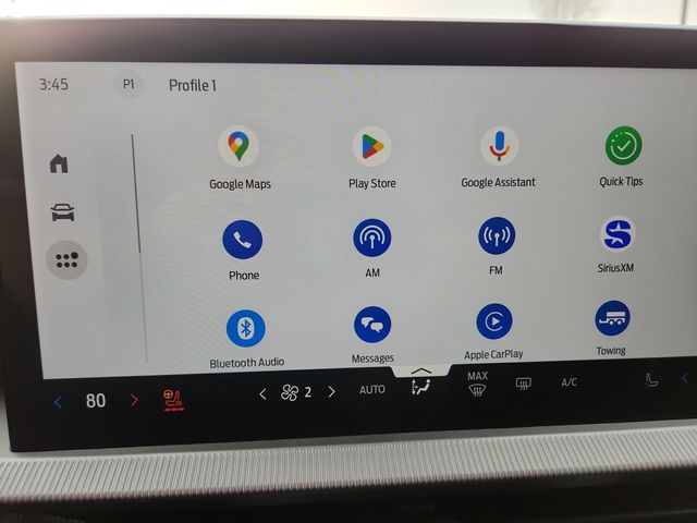 Equipment Group 300A Standard Package, Apple CarPlay/Android Auto, Exterior Parking Camera Rear, Front dual zone A/C, Fully automatic headlights, Heated front seats, Navigation System, Power Liftgate, Radio: B&O Sound System by Bang & Olufsen, Remote keyless entry, Wheels: 20" Ebony-Painted Machined Aluminum, 10 Speakers, 2nd Row Captain's Chairs w/E-Z Entry & Armrest, 3.58 Non-Limited Slip Rear Axle, 3rd row seats: bench, 4-Wheel Disc Brakes, ABS brakes, Air Conditioning, Alloy wheels, AM/FM radio: SiriusXM with 360L, Auto High-beam Headlights, Automatic temperature control, Brake assist, Bumpers: body-color, Compass, Delay-off headlights, Driver door bin, Driver vanity mirror, Dual front impact airbags, Dual front side impact airbags, Electronic Stability Control, Emergency communication system: 911 Assist, Four wheel independent suspension, Front anti-roll bar, Front Bucket Seats, Front Center Armrest, Front fog lights, Front License Plate Bracket, Front reading lights, Garage door transmitter, Heated door mirrors, Heated steering wheel, Heated Unique Cloth Captain's Chairs, Illuminated entry, Internet access capable: FordPass Connect 5G, Knee airbag, Leather steering wheel, Low tire pressure warning, Occupant sensing airbag, Outside temperature display, Overhead airbag, Overhead console, Panic alarm, Passenger door bin, Passenger vanity mirror, Power door mirrors, Power driver seat, Power passenger seat, Power steering, Power windows, Rear air conditioning, Rear anti-roll bar, Rear reading lights, Rear window defroster, Rear window wiper, Security system, Speed control, Speed-sensing steering, Speed-Sensitive Wipers, Split folding rear seat, Spoiler, Steering wheel mounted audio controls, Tachometer, Telescoping steering wheel, Tilt steering wheel, Traction control, Trip computer, and Variably intermittent wipers.