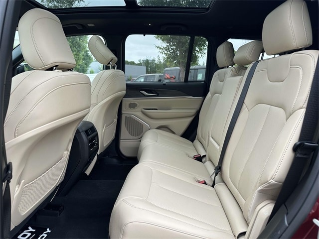 Luxury Tech Group II (2nd-Row Manual Window Shades, Auto-Dimming Exterior Driver Mirror, Capri Leatherette w/Axis II Seats, Integrated Off-Road Camera, Intersection Collision Assist System, Memory Steering Column, ParkSense Front/Rear Park Assist w/Stop, Passive Entry - Front/Rear Doors, Liftgate, Power Tilt/Telescope Steering Column, Rain Sensitive Windshield Wipers, Rear Back Up Camera Washer, Rearview Autodim Digital Display Mirror, Surround View Camera System, Ventilated Front Seats, and Wireless Charging Pad), Quick Order Package 27F, 10 Speakers, 3.70 Rear Axle Ratio, 4-Wheel Disc Brakes, ABS brakes, Air Conditioning, Alloy wheels, AM/FM radio: SiriusXM with 360L, Anti-whiplash front head restraints, Audio memory, Auto High-beam Headlights, Automatic temperature control, Brake assist, Bumpers: body-color, Capri Leatherette Seats, Compass, Delay-off headlights, Driver door bin, Driver vanity mirror, Dual front impact airbags, Dual front side impact airbags, Electronic Stability Control, Four wheel independent suspension, Front anti-roll bar, Front Bucket Seats, Front Center Armrest w/Storage, Front dual zone A/C, Front fog lights, Front License Plate Bracket, Front reading lights, Fully automatic headlights, Garage door transmitter, Heated door mirrors, Heated front seats, Heated rear seats, Heated steering wheel, Heavy Duty Suspension, Illuminated entry, Knee airbag, Low tire pressure warning, Memory seat, Navigation System, Occupant sensing airbag, Outside temperature display, Overhead airbag, Overhead console, Panic alarm, ParkView Rear Back-Up Camera, Passenger door bin, Passenger vanity mirror, Power door mirrors, Power driver seat, Power Liftgate, Power moonroof, Power passenger seat, Power steering, Power windows, Radio data system, Radio: Uconnect 5 Nav w/10.1" Display, Rear anti-roll bar, Rear reading lights, Rear window defroster, Rear window wiper, Remote keyless entry, Security system, Speed control, Speed-Sensitive Wipers, Split folding rear seat, Spoiler, Steering wheel mounted audio controls, Tachometer, Telescoping steering wheel, Tilt steering wheel, Traction control, Trip computer, Turn signal indicator mirrors, Variably intermittent wipers, Voltmeter, and Wheels: 18" x 8" Fully Painted Aluminum.