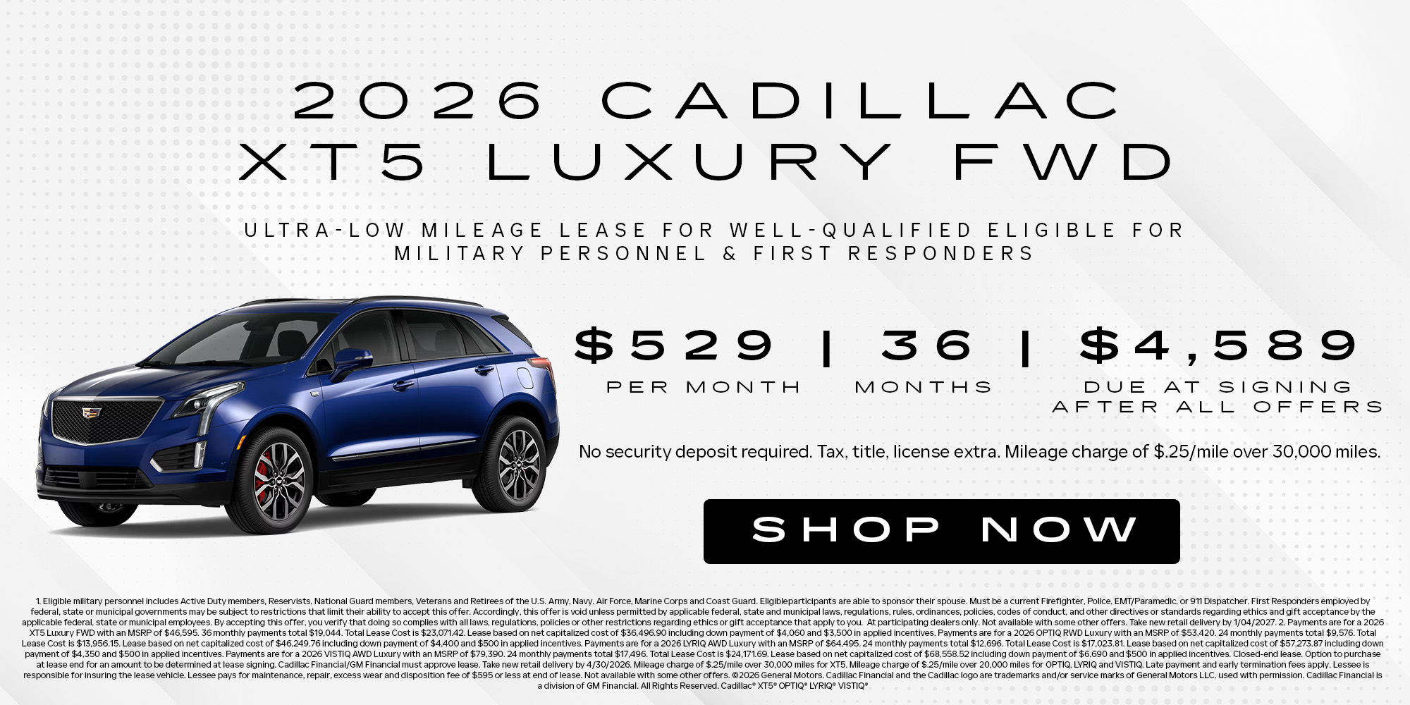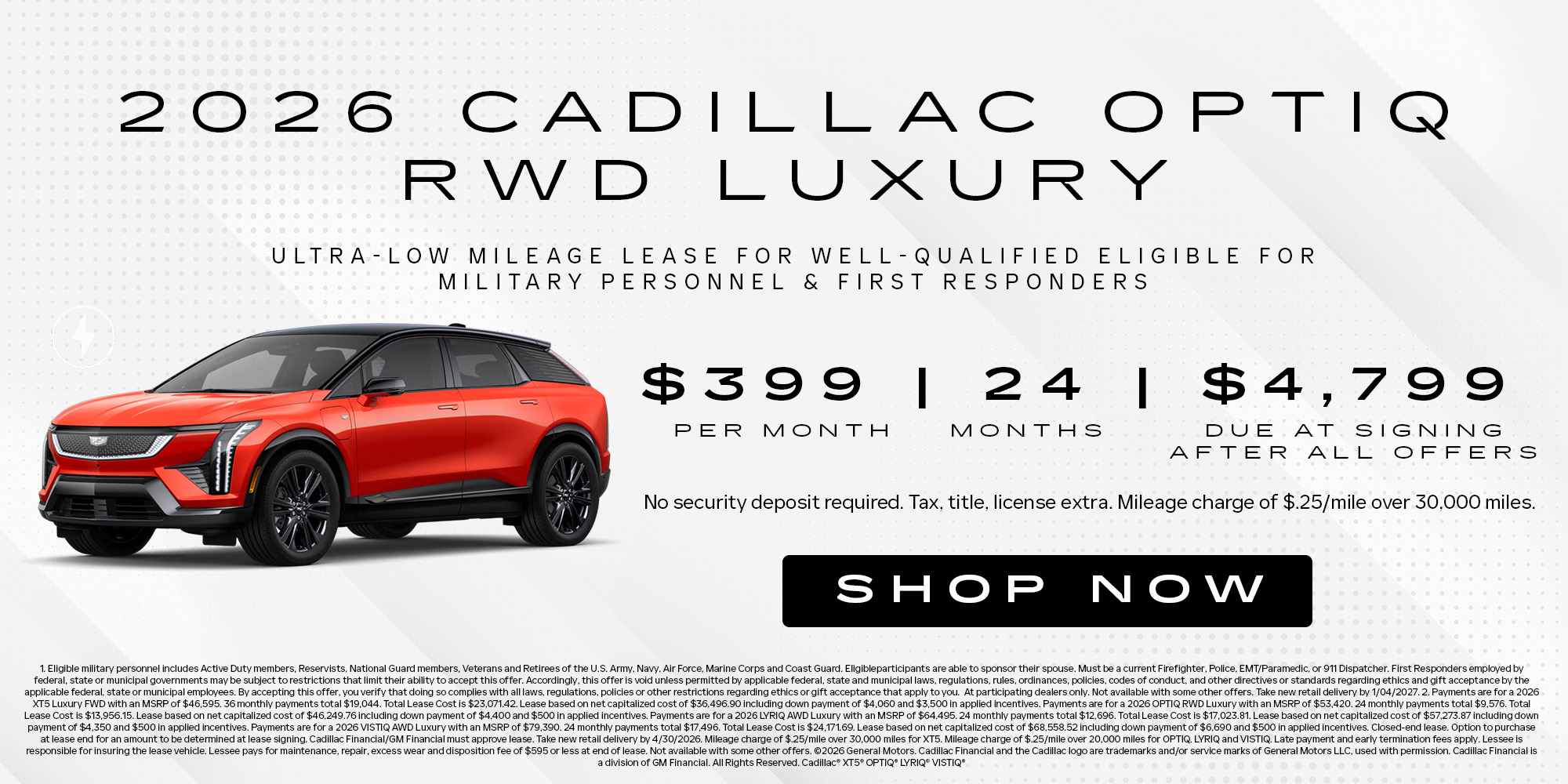 At Malloy Cadillac, we're proud to honor the service and dedication of our military members and first responders. As a thank-you for all you do, we offer exclusive special offers designed to help you enjoy the premium comfort, performance, and sophistication of a new Cadillac. Click below to explore current incentives and let our team help you find the right luxury vehicle at the right value.