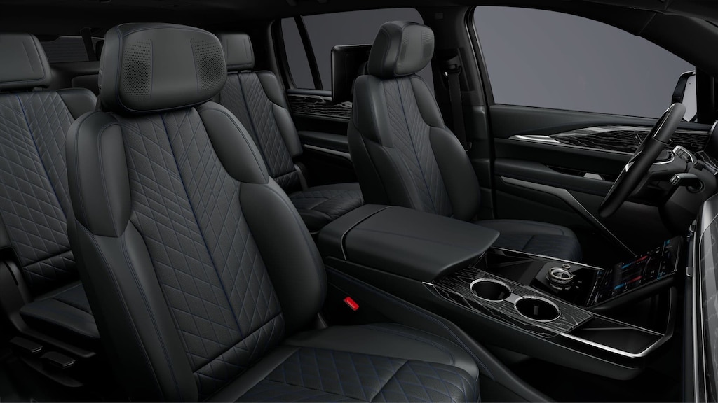 3 Years SiriusXM, 3rd row seats: split-bench, 4-Way Power Driver Lumbar Seat Adjuster, 4-Wheel Disc Brakes, 8-Way Power Driver Seat Adjuster, 8-Way Power Front Passenger Seat Adjuster, ABS brakes, Adaptive suspension, Air Conditioning, Alloy wheels, AM/FM radio: SiriusXM with 360L, Audio memory, Auto High-beam Headlights, Auto-dimming door mirrors, Auto-dimming Rear-View mirror, Auto-leveling suspension, Automatic temperature control, Brake assist, Bumpers: body-color, Compass, Delay-off headlights, Driver door bin, Driver vanity mirror, Dual front impact airbags, Dual front side impact airbags, Electronic Stability Control, Emergency communication system: OnStar and Cadillac connected services capable, Four wheel independent suspension, Front anti-roll bar, Front Bucket Seats, Front Center Armrest, Front dual zone A/C, Front License Plate Bracket, Front reading lights, Fully automatic headlights, Garage door transmitter, Google Built-In, Heads-Up Display, Heated door mirrors, Heated Driver & Front Passenger Seats, Heated front seats, Heated rear seats, Heated steering wheel, HVAC memory, Illuminated entry, Knee airbag, Leather steering wheel, Low tire pressure warning, Magnetic Ride Control Suspension, Memory seat, Navigation system: Google Automotive Services Capable, Occupant sensing airbag, Outside temperature display, Overhead airbag, Overhead console, Panic alarm, Passenger door bin, Passenger vanity mirror, Power door mirrors, Power driver seat, Power Liftgate, Power passenger seat, Power steering, Power windows, Radio data system, Radio: Infotainment Experience, Rain sensing wipers, Rear air conditioning, Rear anti-roll bar, Rear dual zone A/C, Rear reading lights, Rear Seat Entertainment System, Rear window defroster, Rear window wiper, Reconfigurable Full-Color Head-Up Display, Remote keyless entry, Security system, SiriusXM w/360L Trial Subscription, Speed control, Speed-sensing steering, Split folding rear seat, Spoiler, Steering wheel mounted audio controls, Telescoping steering wheel, Tilt steering wheel, Traction control, Trip computer, Turn signal indicator mirrors, Variably intermittent wipers, Ventilated front seats, and Wheels: 24 7-Spoke Diamond Cut Face Alloy.