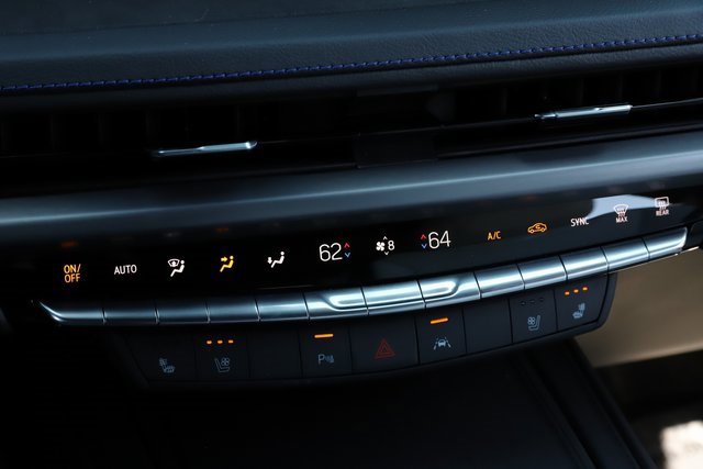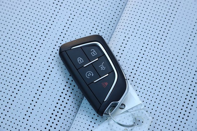 - Opens or closes when the system senses the key fob and the driver extends their foot under the left-hand side of the rear bumper over an image of the Cadillac Crest projected under the vehicle