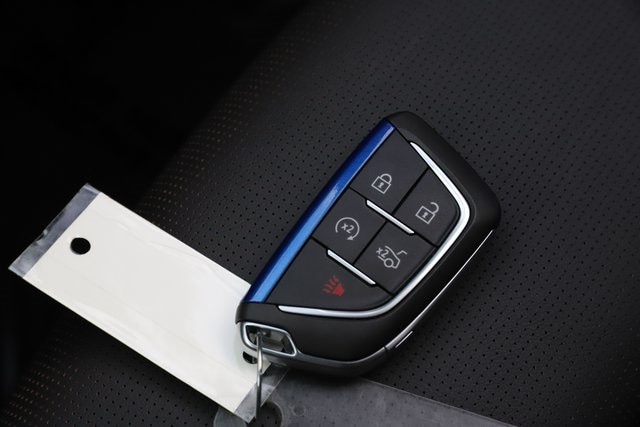 - Within 6 to 9 feet of the vehicle with the factory key fob, the Cadillac Crest logo will illuminate on the ground to indicate the foot-kick location