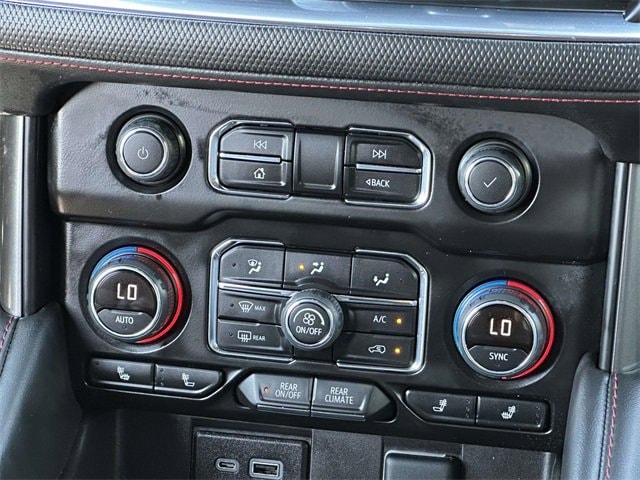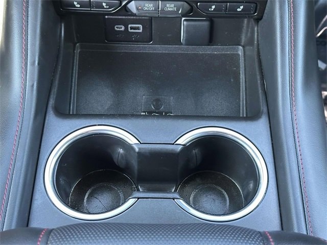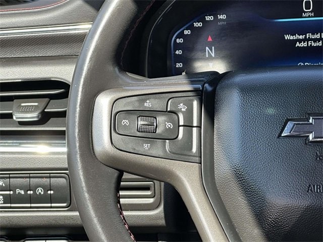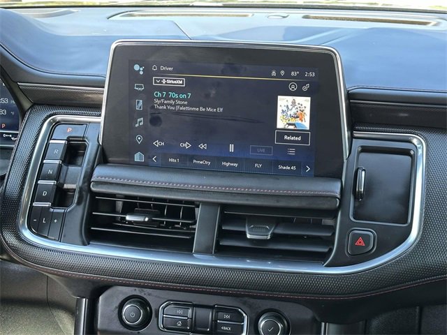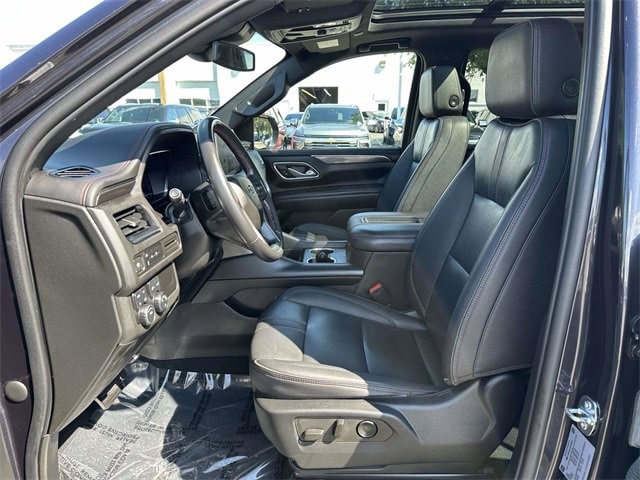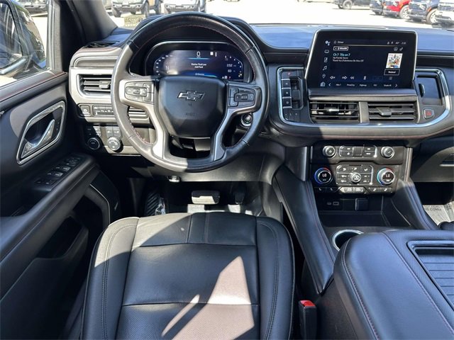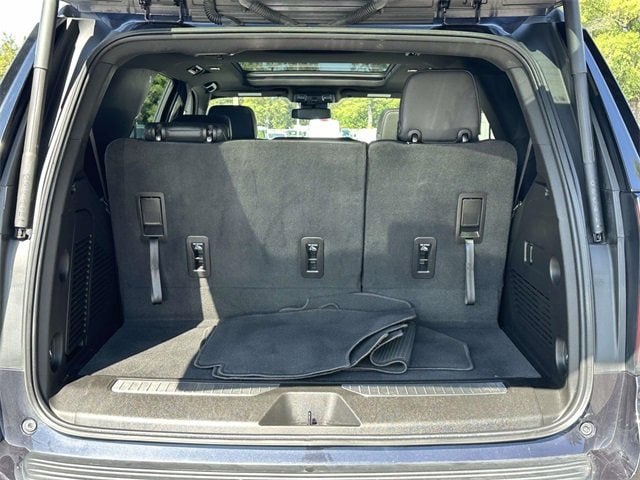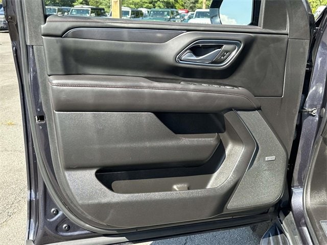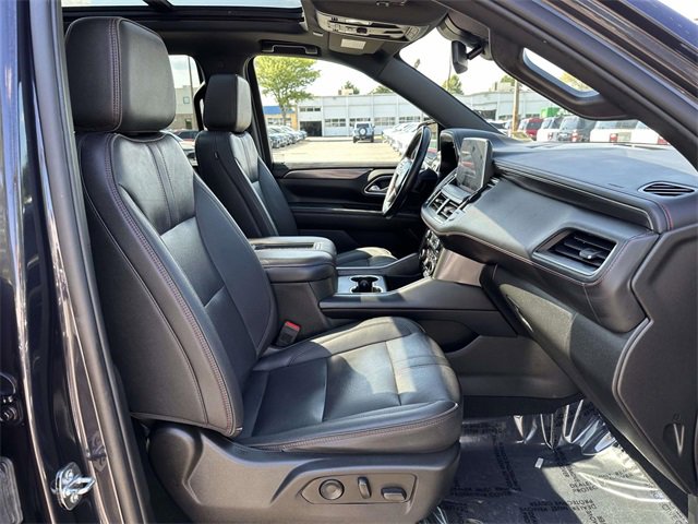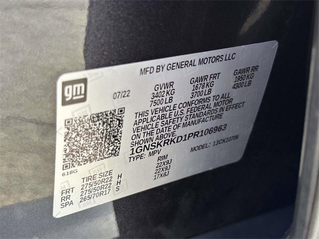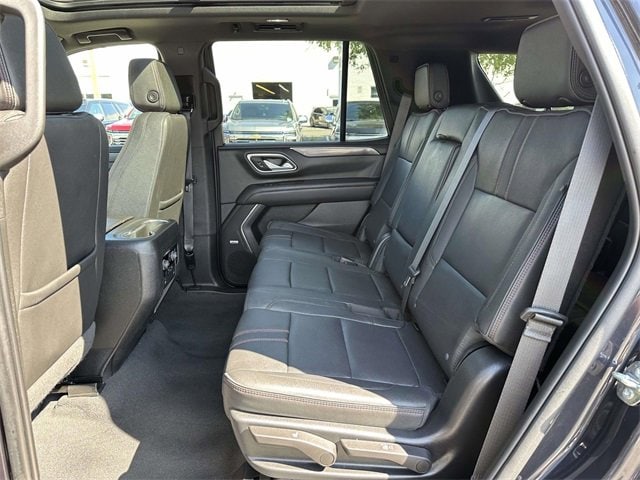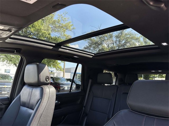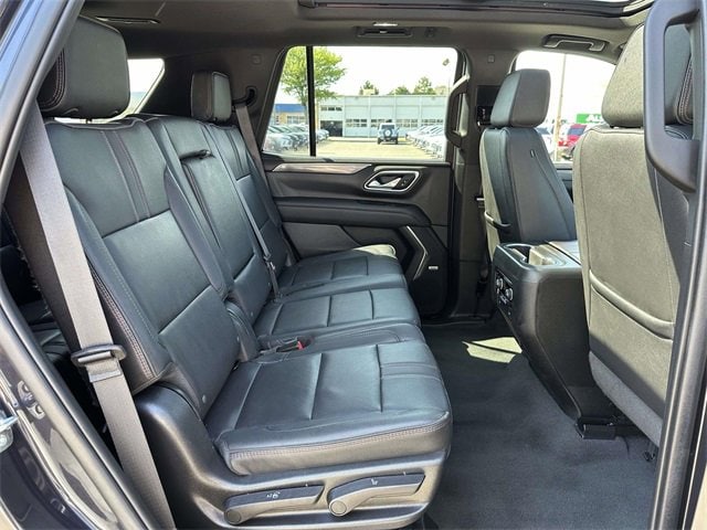 Recent Arrival! License Plate Front Mounting Package, Preferred Equipment Group 1SP (1st & 2nd Row Color-Keyed Carpeted Floor Mats, Auto-Dimming Inside Rear-View Mirror, Bose 9-Speaker Stereo Audio System Feature, Bright Front & Rear Door Sill Plates, Color-Keyed Carpeting Floor Covering, Driver & Front Outboard Passenger Airbags, Enhanced Driver Information Center, Floor Console w/Storage Area, Hands-Free Rear Power Programmable Liftgate, Infotainment Display, LED Daytime Running Lamps, Memory Settings for Driver, Remote Start, SiriusXM Radio w/360L, Universal Home Remote, Wireless Charging, and Wrapped Steering Wheel), Navigation System, 10-Way Power Driver & Passenger Seat Adjusters, 3.23 Rear Axle Ratio, 3rd row seats: split-bench, 4-Wheel Disc Brakes, 9 Speakers, ABS brakes, Air Conditioning, Alloy wheels, AM/FM radio: SiriusXM with 360L, Apple CarPlay/Android Auto, Auto High-beam Headlights, Auto-dimming Rear-View mirror, Automatic temperature control, Black Illuminated Front Bowtie Emblem (LPO), Brake assist, Bumpers: body-color, Compass, Delay-off headlights, Driver door bin, Driver vanity mirror, Dual front impact airbags, Dual front side impact airbags, Dual-Pane Power Panoramic Sunroof, Electrical Steering Column Lock (DISC), Electronic Stability Control, Emergency communication system: OnStar and Chevrolet connected services capable, Four wheel independent suspension, Front anti-roll bar, Front Bucket Seats, Front Center Armrest, Front dual zone A/C, Front High-Back Reclining Bucket Seats, Front reading lights, Fully automatic headlights, Garage door transmitter, Heated door mirrors, Heated Driver & Front Passenger Seats, Heated front seats, Illuminated entry, Low tire pressure warning, Memory seat, Occupant sensing airbag, Outside temperature display, Overhead airbag, Overhead console, Panic alarm, Passenger door bin, Passenger vanity mirror, Perforated Leather Seat Trim, Power door mirrors, Power driver seat, Power Liftgate, Power passenger seat, Power steering, Power windows, Premium audio system: Chevrolet Infotainment 3 Premium, Premium Smooth Ride Suspension, Radio: Chevrolet Infotainment 3 Premium System, Rain sensing wipers, Rear air conditioning, Rear anti-roll bar, Rear reading lights, Rear seat center armrest, Rear window defroster, Rear window wiper, Remote keyless entry, Roof rack: rails only, Security system, Set of 4 Wheel Locks (LPO), Speed control, Speed-sensing steering, Split folding rear seat, Spoiler, Steering wheel mounted audio controls, Tachometer, Telescoping steering wheel, Tilt steering wheel, Traction control, Trip computer, Variably intermittent wipers, Voltmeter, Wheels: 22" Multi-Spoke Gloss Black (LPO) (SRV), Wheels: 22" x 9" Bright Machined, and Wheels: 22" x 9" Steel Interim (LPO)