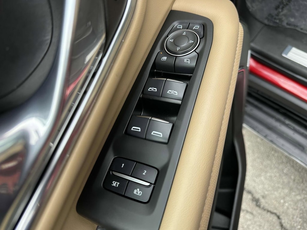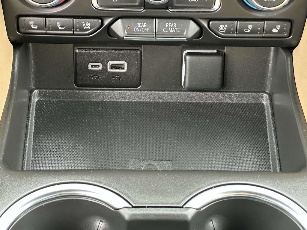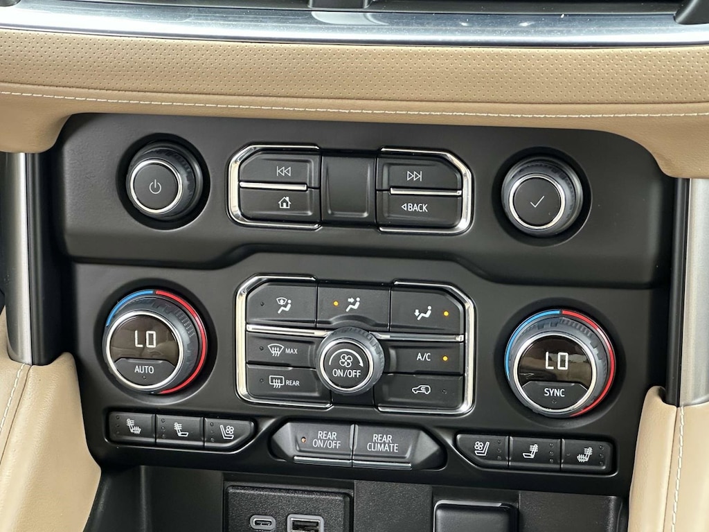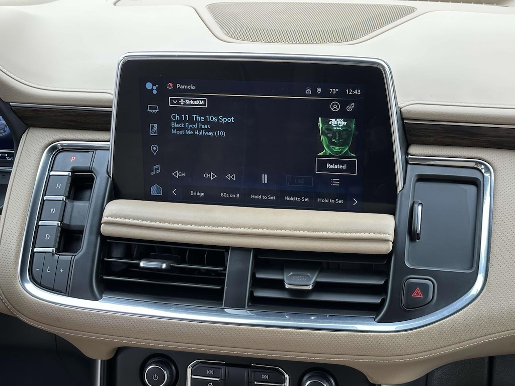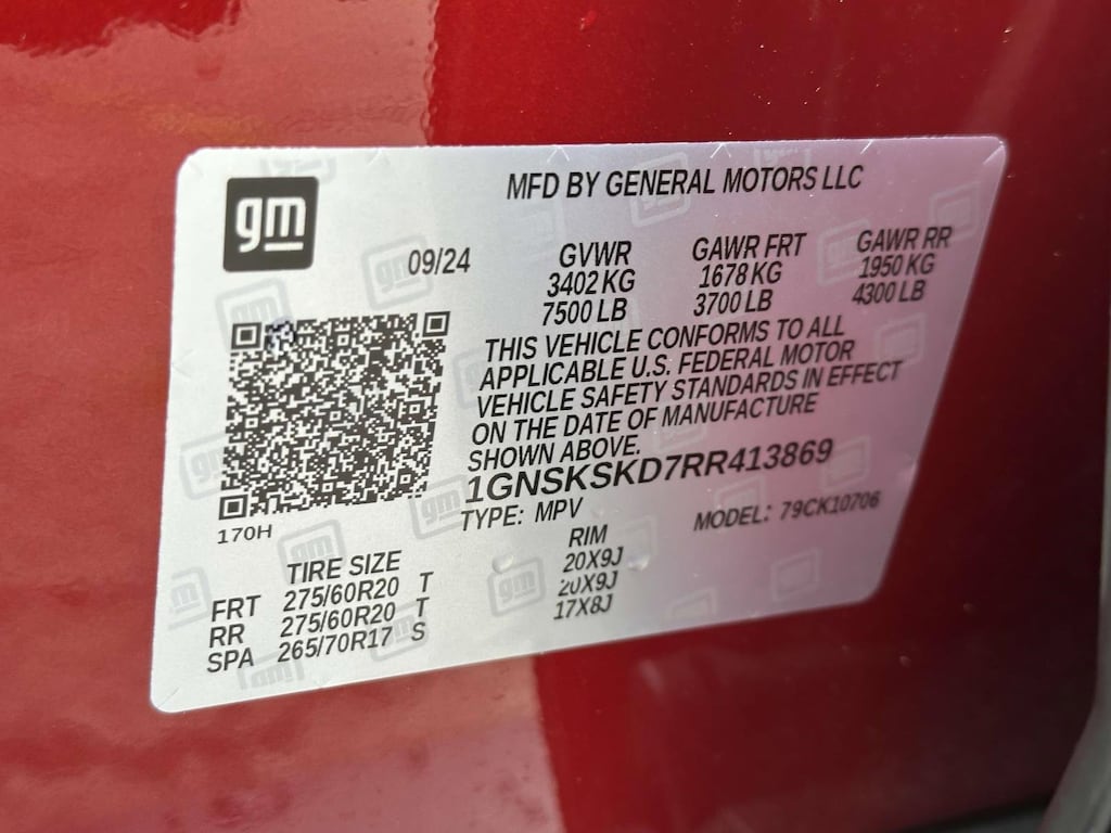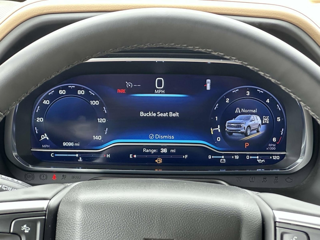 License Plate Front Mounting Package, Preferred Equipment Group 1LZ (1st & 2nd Row Color-Keyed Carpeted Floor Mats, 2-Speed Active Electronic AutoTrac Transfer Case, 3rd Row 60/40 Power-Folding Split-Bench Seat, Auto-Dimming Inside Rear-View Mirror, Bose 10-Speaker Centerpoint Surround Audio Sys Ft, Bright Front & Rear Door Sill Plates, Chrome Door Handles w/Body-Color Strip, Chrome Mirror Caps, Color-Keyed Carpeting Floor Covering, Driver & Front Outboard Passenger Airbags, Dual Exhaust System, Enhanced Driver Information Center, Floor Console, Hands-Free Rear Power Programmable Liftgate, Heated 2nd Row Outboard Seats, Heated Steering Wheel, Hill Descent Control, Lane Change Alert w/Side Blind Zone Alert, LED Daytime Running Lamps, Memory Settings, Outside Heated Power-Adjustable Mirrors, Power Release 2nd Row Bucket Seats, Power Tilt & Telescopic Steering Column, Rear Cross Traffic Alert, Remote Start, Safety Alert Seat, SiriusXM w/360L, Universal Home Remote, Wireless Charging, and Wrapped Steering Wheel), 4WD, Jet Black/Maple Sugar Leather, Navigation System, 10 Speakers, 12-Way Power Driver & Passenger Seat Adjusters, 20 x 9 Polished Aluminum Wheels, 3.23 Rear Axle Ratio, 3rd row seats: split-bench, 4-Wheel Disc Brakes, ABS brakes, Adaptive suspension, Air Conditioning, Alloy wheels, AM/FM radio: SiriusXM with 360L, Apple CarPlay/Android Auto, Auto High-beam Headlights, Auto-dimming door mirrors, Auto-dimming Rear-View mirror, Auto-leveling suspension, Automatic temperature control, Brake assist, Bumpers: body-color, Compass, Delay-off headlights, Driver & Front Passenger Heated & Ventilated Seats, Driver door bin, Driver vanity mirror, Dual front impact airbags, Dual front side impact airbags, Electronic Stability Control, Emergency communication system: OnStar and Chevrolet connected services capable, Four wheel independent suspension, Front anti-roll bar, Front Bucket Seats, Front Center Armrest, Front dual zone A/C, Front High-Back Reclining Bucket Seats, Front reading lights, Fully automatic headlights, Garage door transmitter, Heated door mirrors, Heated Driver & Front Passenger Seats, Heated front seats, Heated rear seats, Heated steering wheel, Illuminated entry, Infotainment Display, Low tire pressure warning, Magnetic Ride Control Suspension, Memory seat, Occupant sensing airbag, Outside temperature display, Overhead airbag, Overhead console, Panic alarm, Passenger door bin, Passenger vanity mirror, Perforated Leather Seat Trim, Power door mirrors, Power driver seat, Power Liftgate, P