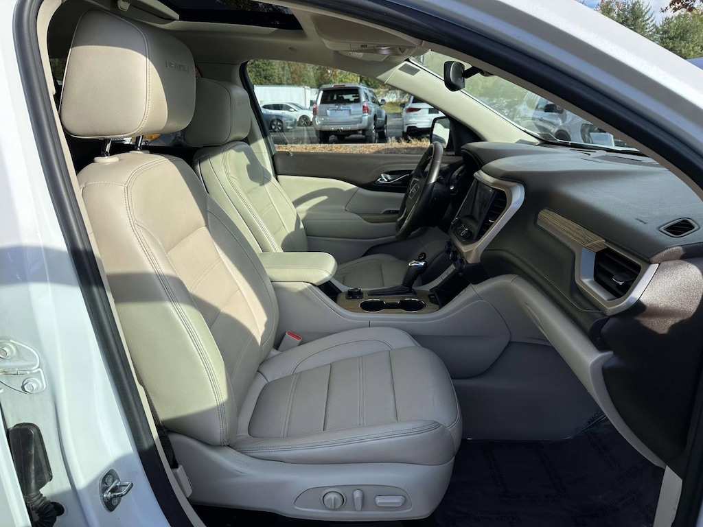 White Frost Tricoat 2017 GMC Acadia Denali AWD 6-Speed Automatic 3.6L V6 SIDI DOHC VVT AWD, Cocoa/ Shale Leather.