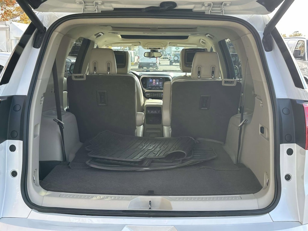 Preferred Equipment Group 5SA (Electronic Cruise Control w/Set & Resume Speed), Technology Package (Forward Automatic Braking, Full Speed Adaptive Cruise Control w/Stop/Go, and Surround Vision System), AWD, Cocoa/ Shale Leather, 3.16 Axle Ratio, 3rd row seats: split-bench, 4-Wheel Disc Brakes, 6-Passenger (2-2-2 Seating Configuration), 8 Speakers, ABS brakes, Air Conditioning, Alloy wheels, AM/FM radio: SiriusXM, Apple CarPlay/Android Auto, Auto High-beam Headlights, Auto-dimming door mirrors, Auto-dimming Rear-View mirror, Automatic temperature control, Brake assist, Bumpers: body-color, Chassis Continuously Variable Real Time Damping, Compass, Delay-off headlights, Driver door bin, Driver vanity mirror, Dual front impact airbags, Dual front side impact airbags, Dual SkyScape 2-Panel Power Sunroof, Electronic Stability Control, Emergency communication system: OnStar Guidance, Exterior Parking Camera Rear, Four wheel independent suspension, Front anti-roll bar, Front Bucket Seats, Front Center Armrest, Front dual zone A/C, Front fog lights, Front License Plate Bracket, Front reading lights, Fully automatic headlights, Garage door transmitter, Heated door mirrors, Heated front seats, Heated rear seats, Heated steering wheel, High-Intensity Discharge Headlights, Illuminated entry, Knee airbag, Low tire pressure warning, Memory seat, Navigation System, Occupant sensing airbag, Outside temperature display, Overhead airbag, Overhead console, Panic alarm, Passenger door bin, Passenger vanity mirror, Perforated Leather-Appointed Seat Trim, Performance Ride & Handling Suspension, Power door mirrors, Power driver seat, Power Liftgate, Power passenger seat, Power steering, Power windows, Premium audio system: IntelliLink, Radio data system, Radio: AM/FM 8 Diagonal Color Touch Navigation, Rear air conditioning, Rear anti-roll bar, Rear reading lights, Rear Seat DVD Entertainment System, Rear window defroster, Rear window wiper, Remote keyless entry, Roof rack: rails only, Security system, SiriusXM Satellite Radio, Speed control, Speed-sensing steering, Spoiler, Steering wheel mounted audio controls, Tachometer, Telescoping steering wheel, Tilt steering wheel, Traction control, Trip computer, Variably intermittent wipers, Ventilated front seats, Voltmeter, and Wheels: 20 x 8 Polished Aluminum (4) Recent Arrival! Odometer is 5130 miles below market average!