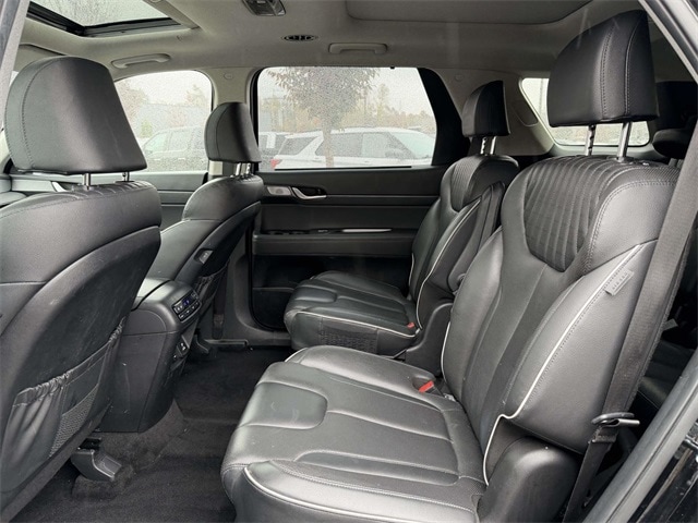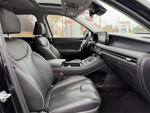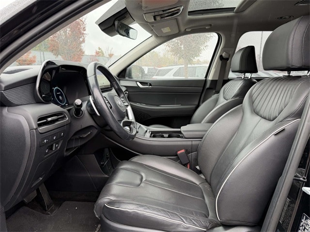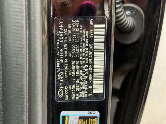 Option Group 01, 12 Speakers, 3.648 Axle Ratio, 3rd row seats: split-bench, 4-Wheel Disc Brakes, ABS brakes, Air Conditioning, Alloy wheels, AM/FM radio: SiriusXM, Apple CarPlay & Android Auto, Auto High-beam Headlights, Auto-dimming door mirrors, Auto-dimming Rear-View mirror, Auto-leveling suspension, Automatic temperature control, Brake assist, Bumpers: body-color, Cargo Net, Cargo Tray, Carpeted Floor Mats, Compass, Delay-off headlights, Driver door bin, Driver vanity mirror, Dual front impact airbags, Dual front side impact airbags, Electronic Stability Control, Emergency communication system: Blue Link Connected Car Service (3-year complimentary subscription), Exterior Parking Camera Rear, Four wheel independent suspension, Front anti-roll bar, Front Bucket Seats, Front Center Armrest, Front dual zone A/C, Front reading lights, Fully automatic headlights, Garage door transmitter: HomeLink, harman/kardon® Speakers, Heads-Up Display, Heated & Ventilated Front Bucket Seats, Heated door mirrors, Heated front seats, Heated rear seats, Heated steering wheel, Illuminated entry, Knee airbag, Leather Seat Trim, Low tire pressure warning, Memory seat, Navigation System, Occupant sensing airbag, Outside temperature display, Overhead airbag, Overhead console, Panic alarm, Passenger door bin, Passenger vanity mirror, Power door mirrors, Power driver seat, Power Liftgate, Power moonroof, Power passenger seat, Power steering, Power windows, Radio data system, Radio: AM/FM/MP3 Premium Audio System, Rain sensing wipers, Rear air conditioning, Rear anti-roll bar, Rear audio controls, Rear reading lights, Rear side impact airbag, Rear window defroster, Rear window wiper, Reclining 3rd row seat, Remote keyless entry, Security system, Speed control, Speed-sensing steering, Split folding rear seat, Spoiler, Steering wheel mounted audio controls, Tachometer, Telescoping steering wheel, Tilt steering wheel, Traction control, Trip computer, Turn signal indicator mirrors, Variably intermittent wipers, Ventilated front seats, Ventilated rear seats, Wheel Locks, and Wheels: 20" x 7.5J Alloy.