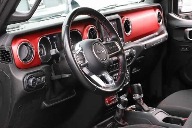 Apple CarPlay/Android Auto, Compass, Driver door bin, Driver vanity mirror, Front reading lights, Garage door transmitter, Illuminated entry, Leather steering wheel, MOPAR Hardtop Headliner, Outside temperature display, Passenger vanity mirror, Quick Order Package 25R, Rear reading lights, Tachometer, Telescoping steering wheel, Tilt steering wheel, Trip computer, Voltmeter.