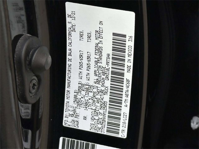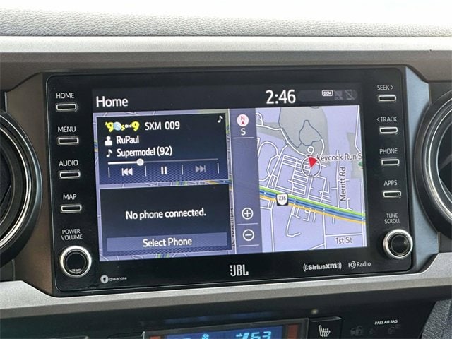 Recent Arrival! Technology Package (Blind Spot Monitor w/Rear Cross Traffic Alert, Mesh Front Grille, and Rear Parking Assist Sonar), TRD Premium Sport Package (120V/400W Deck Mounted AC Power, Auto-Dimming Rearview Mirror w/HomeLink, Automatic Headlights, Color-Keyed Rear Bumper, Engine Immobilizer, Heated Front Seats, Leather Seat Trim, Power Tilt/Slide Moonroof, Radio: Entune Premium JBL AM/FM/CD w/Nav & App Ste, and Smart Key w/Push Button Start), 6 Speakers, ABS brakes, Air Conditioning, All Weather Floor Liner & Door Sill Protector (TMS), Alloy wheels, AM/FM radio: SiriusXM, Anti-whiplash front head restraints, Apple CarPlay/Android Auto, Auto High-beam Headlights, Auto-dimming Rear-View mirror, Automatic temperature control, Axle Ratio: 3.91, Bed Light (TMS), Black Chrome Exhaust Tip (TMS), Brake assist, Bumpers: body-color, Driver door bin, Dual front impact airbags, Dual front side impact airbags, Electronic Stability Control, Emergency communication system: Safety Connect with 1-year trial, Exterior Parking Camera Rear, Fabric Seat Trim (FD), Front anti-roll bar, Front Bucket Seats, Front Center Armrest, Front dual zone A/C, Front fog lights, Front reading lights, Front Seats, Front wheel independent suspension, Hard Tri-Fold Tonneau Cover, Heated door mirrors, Illuminated entry, Knee airbag, Leather Shift Knob, LED Fog Lamp w/Black Bezel, Low tire pressure warning, Mudguards (TMS), Occupant sensing airbag, Outside temperature display, Overhead airbag, Overhead console, Panic alarm, Passenger door bin, Power door mirrors, Power driver seat, Power steering, Power windows, Predator Tube Steps (TMS), Radio: AM/FM Radio, Rear step bumper, Remote keyless entry, Remote Tailgate Lock (TMS), Security system, Speed control, Speed-sensing steering, Split folding rear seat, Steering wheel mounted audio controls, Tachometer, Telescoping steering wheel, Tilt steering wheel, Traction control, Trip computer, Turn signal indicator mirrors, Variably intermittent wipers, and Wheels: 17" x 7.5J Machined Alloy.